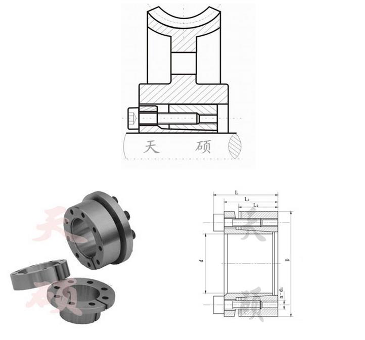 特性: Z3型脹緊內外錐環用內六角螺栓擰緊,能傳遞較大載荷,并且一個錐環上有拆卸螺紋孔;Z3型結合面較長,對中性好,適用于旋轉精度要求較高和傳遞大載荷的場合。