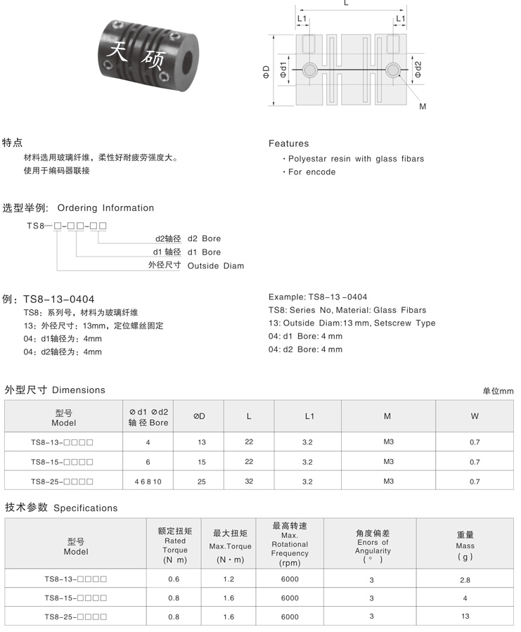 (7)玻璃纖維編碼器聯(lián)軸器公制或英制尺寸均可提供。