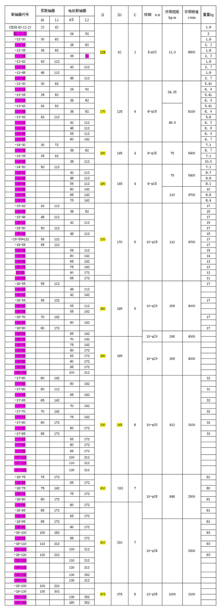 ⑤水泵行業的標準代號為Bl104,其最大許用轉矩為850N·m,最大軸徑為50mm