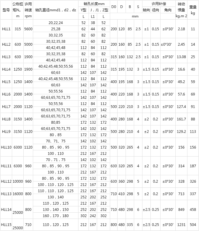 HLL型-彈性柱銷聯(lián)軸器基本參數(shù)和主要尺寸