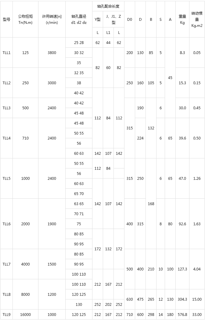 LTZ型(原TLL型)彈性套柱銷聯(lián)軸器基本性能參數(shù)和主要尺寸