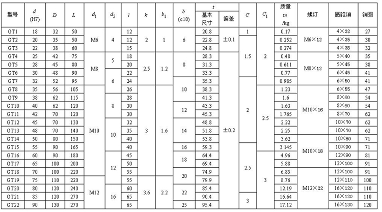 套筒聯軸器、套筒連軸器式中 d1——圓錐銷直徑,mm; [ ]——圓錐銷的許用剪應力,N/mm2,可取[ ]=0.25 , 為銷材料的屈服極限。
